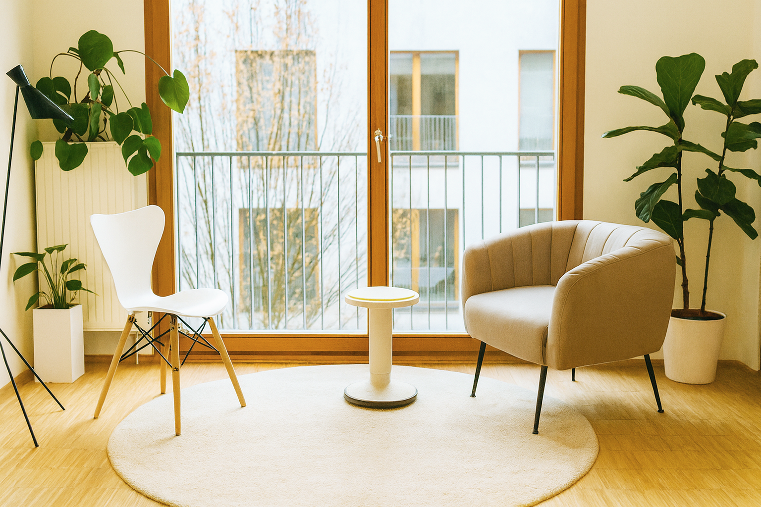 Wir treffen uns entweder in einem ruhigen Raum in Berlin-Mitte (siehe Foto) oder virtuell per Video.